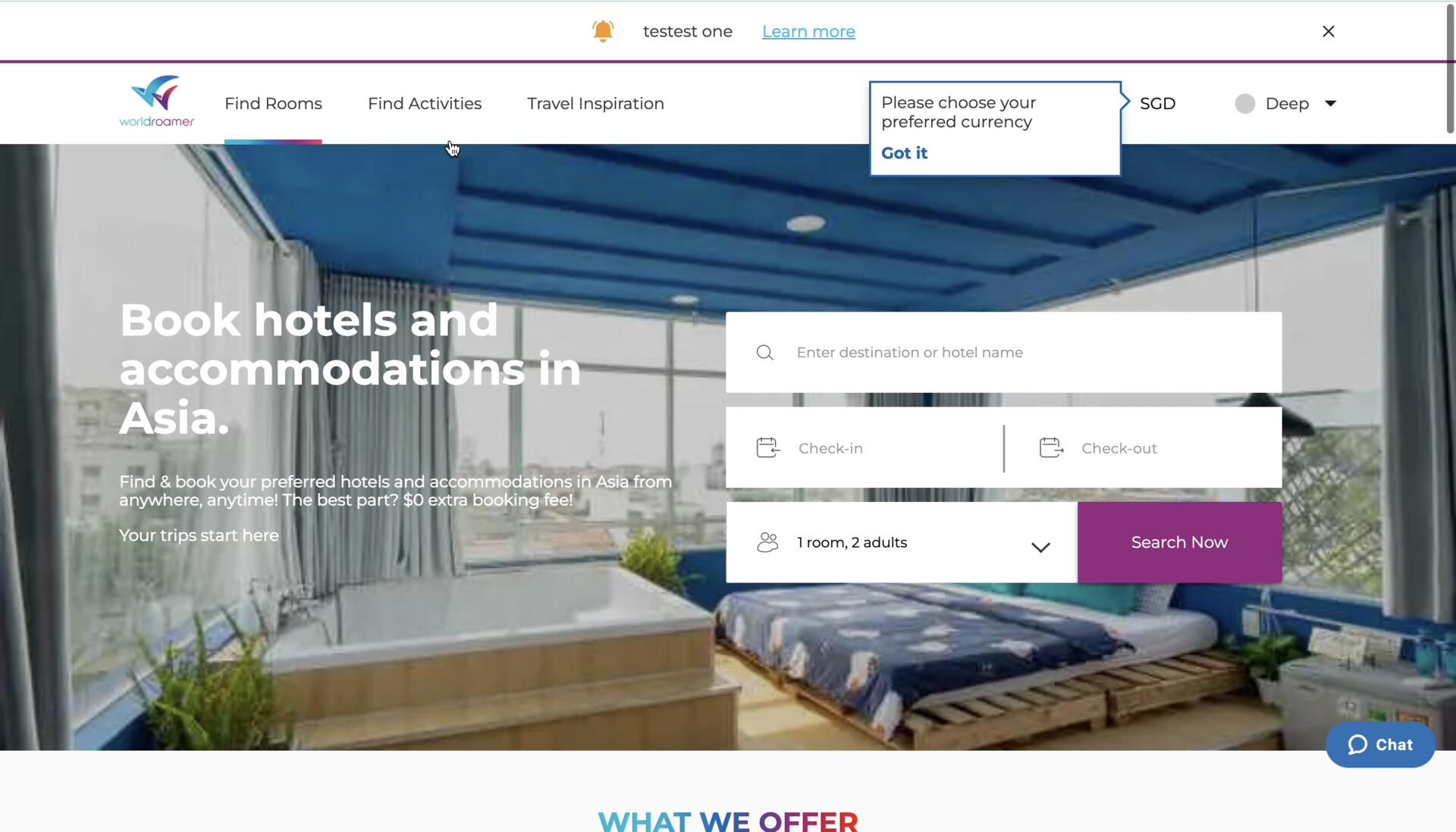 Website Worldroamer Singapore dengan antarmuka modern dan responsif untuk pasar internasional.