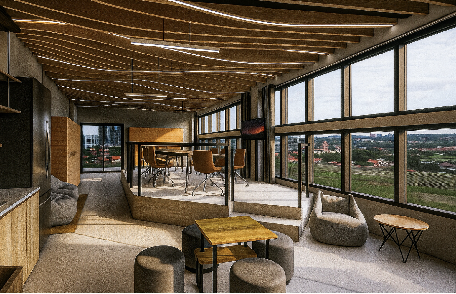 Perencanaan renovasi interior Gedung 10 BPAFK Jakarta dengan konsep modern — memadukan estetika ruang kontemporer, pencahayaan optimal, dan material premium untuk meningkatkan kenyamanan dan fungsi ruang pemerintahan.